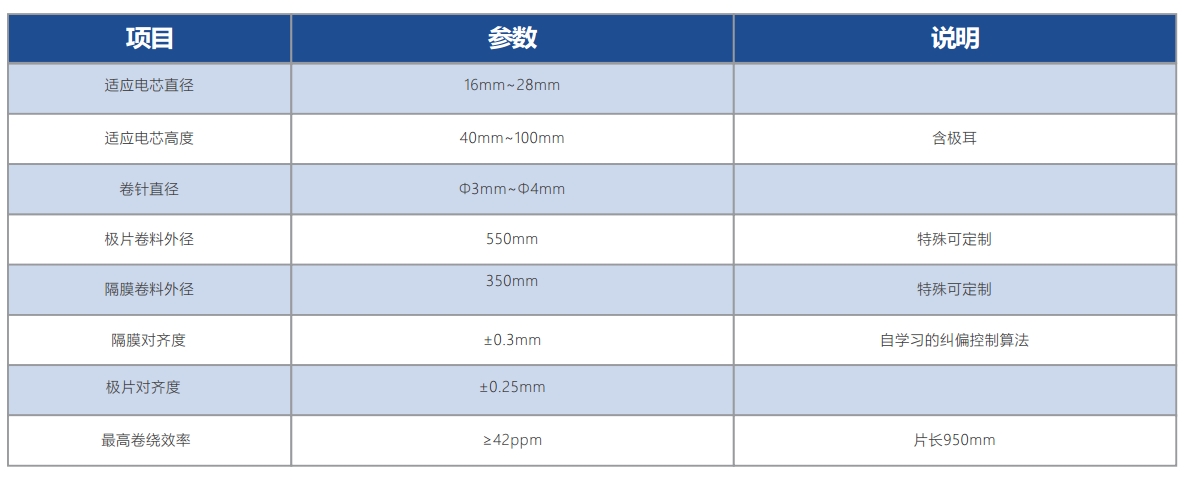 · 电芯直径范围16~28mm,兼容性强,可兼容隔膜外包及负极外包。